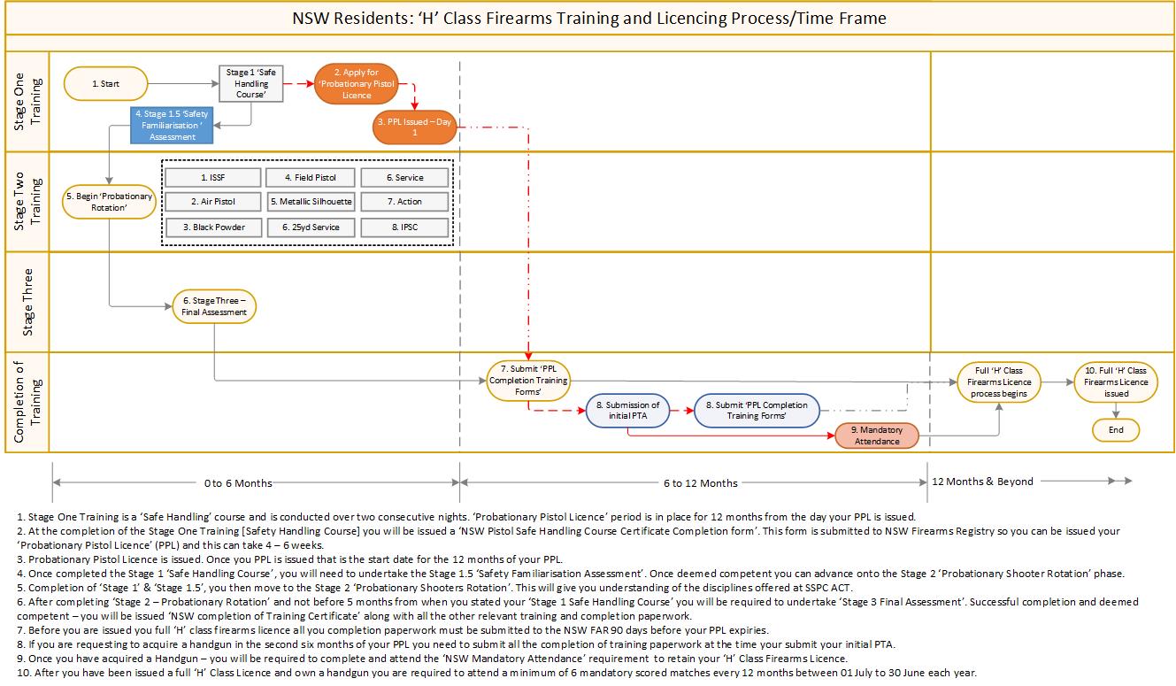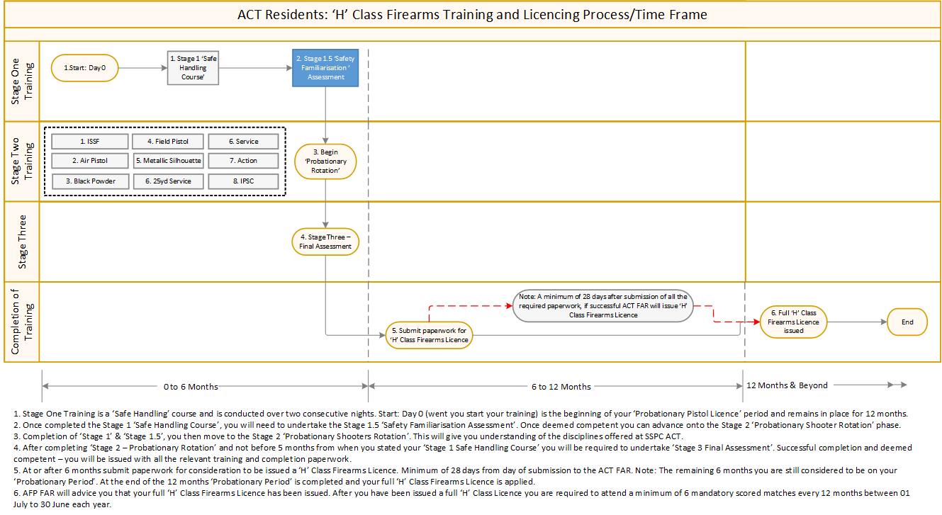 Once you are a member of SSPC ACT you can access the necessary training and assistance needed to obtain a Category H (handgun) licence. This involves numerous sessions over a minimum of six months.